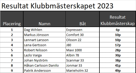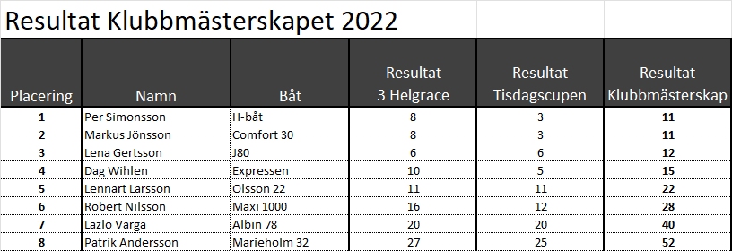 Klubbmästerskap 2021, 18 seglingar. | ||||